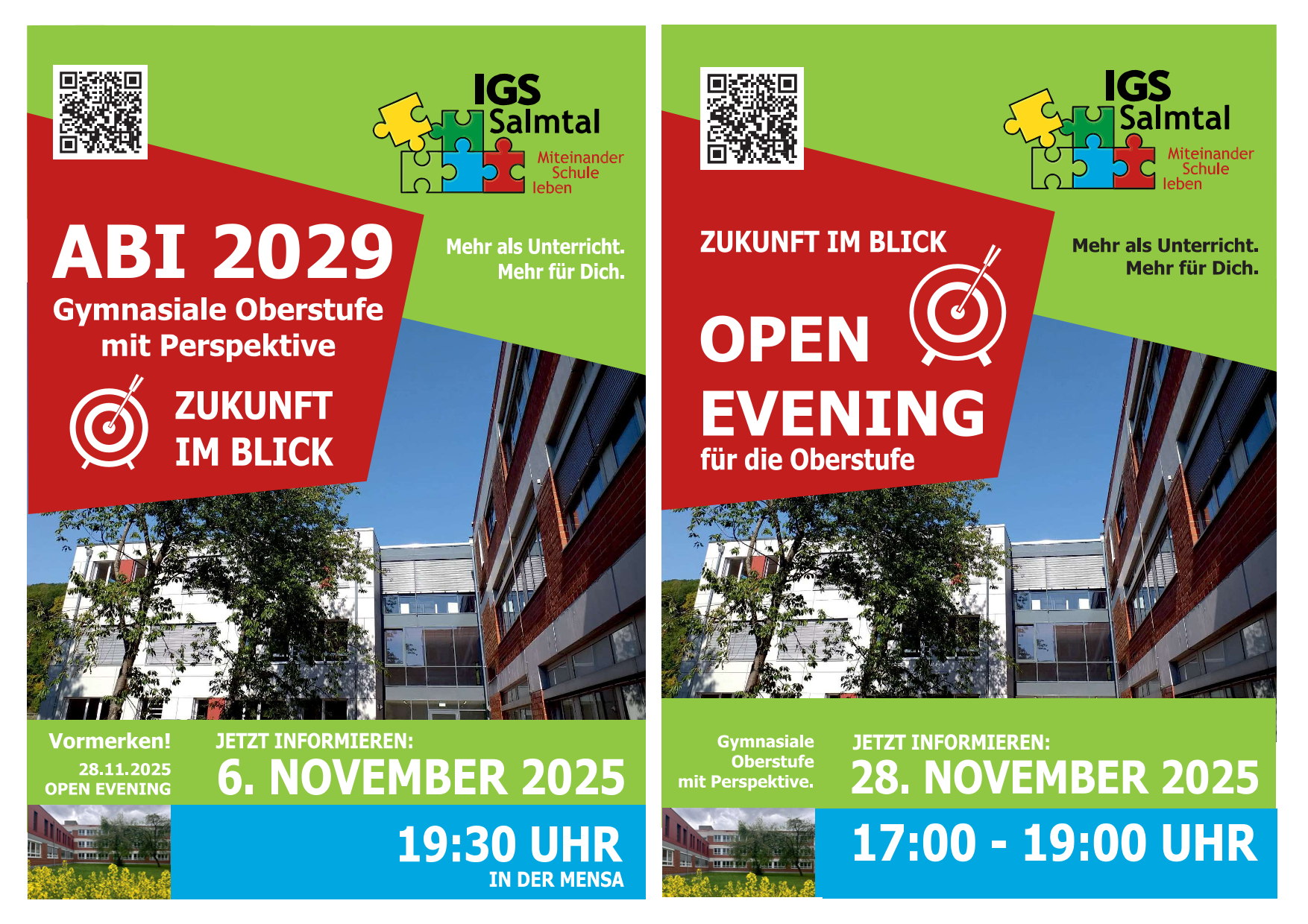 Unser "Open Evening" für Interessierte an der Oberstufe der IGS Salmtal findet in diesem Jahr am 28. November 2025 statt.