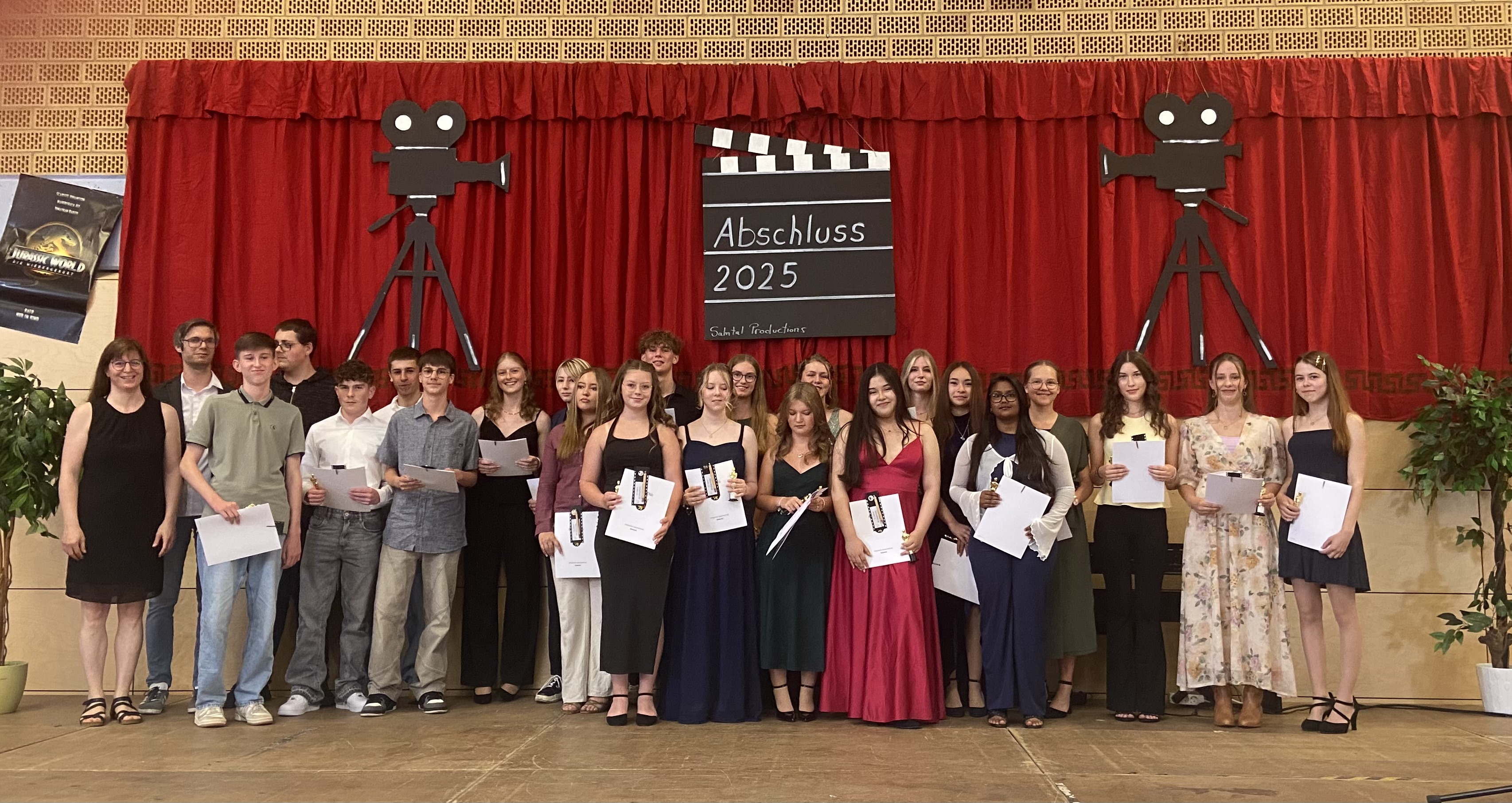 Die Feiern der beiden Jahrgänge fanden nacheinander statt, jeweils im festlich geschmückten Rahmen und begleitet von ihren Mitschülerinnen und Mitschülern, ihrer Familie sowie den Lehrkräften. Persönliche Reden der Klassenlehrkräfte sorgten für bewegende Rückblicke auf die gemeinsame Schulzeit. Ein besonderes Highlight der Abschlussfeier der 10. Klassen war der Auftritt des Jahrgangs-Chors, der mit dem Song „Ein Hoch auf uns“ von Andreas Bourani für Gänsehautmomente sorgte.