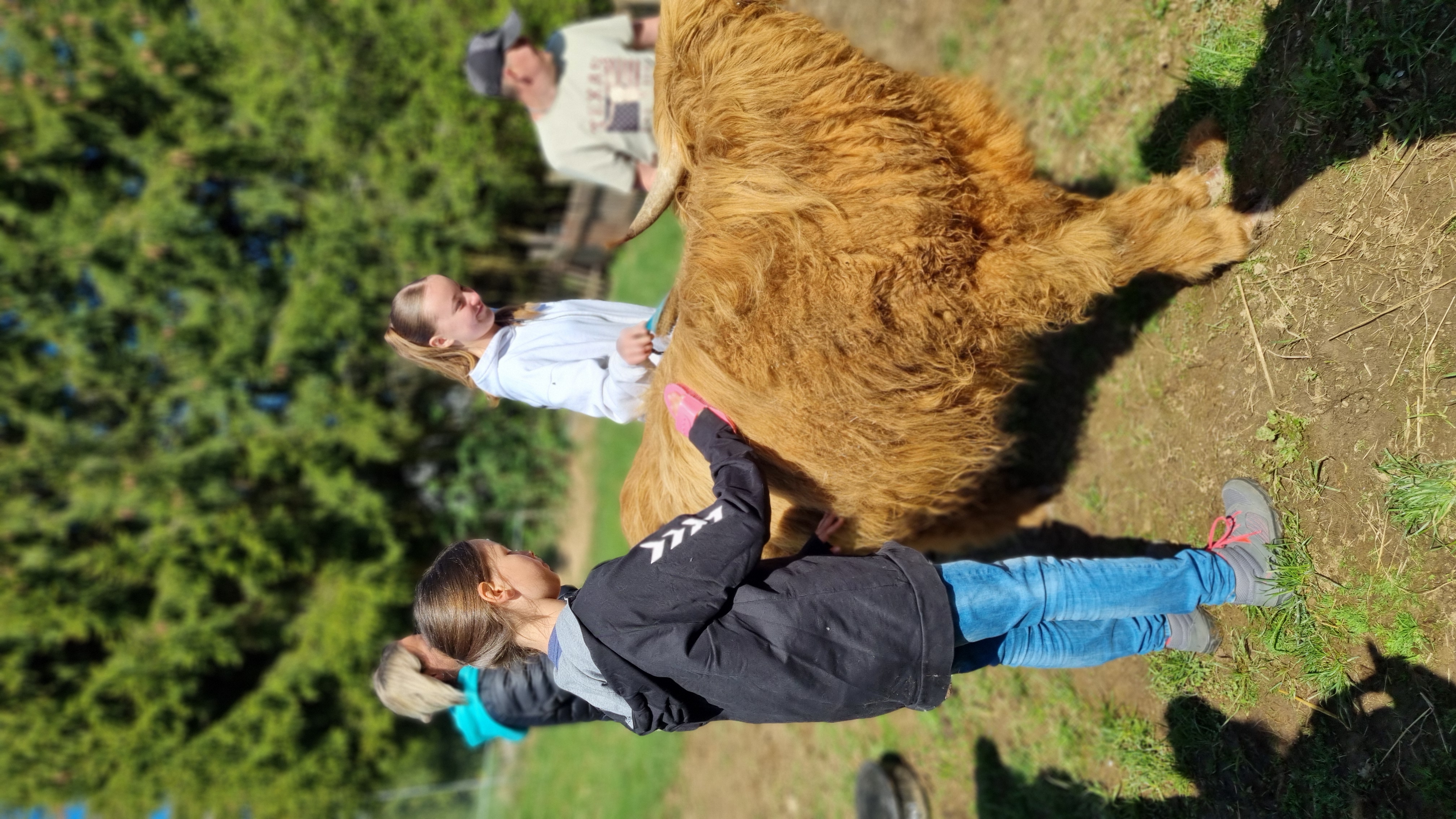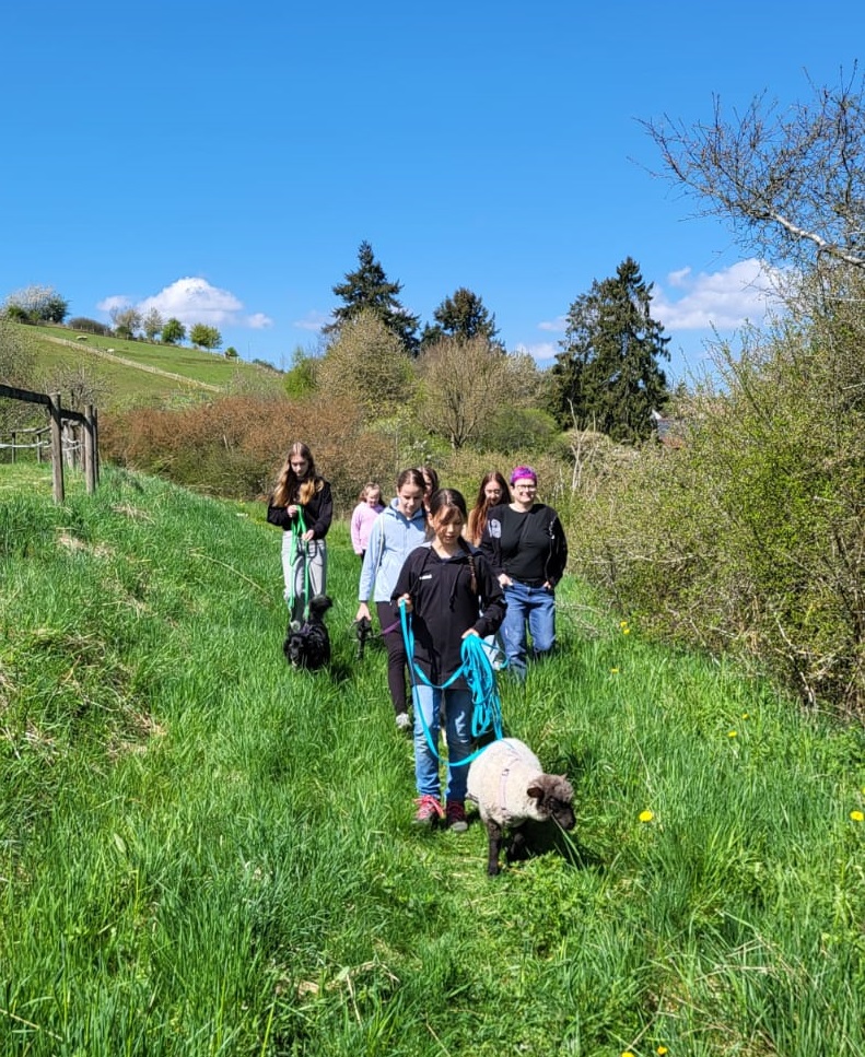 Im Anschluss ging es auf den ersten Spaziergang mit den Rindern, Ziegen, Hunden und Schaf Nora.