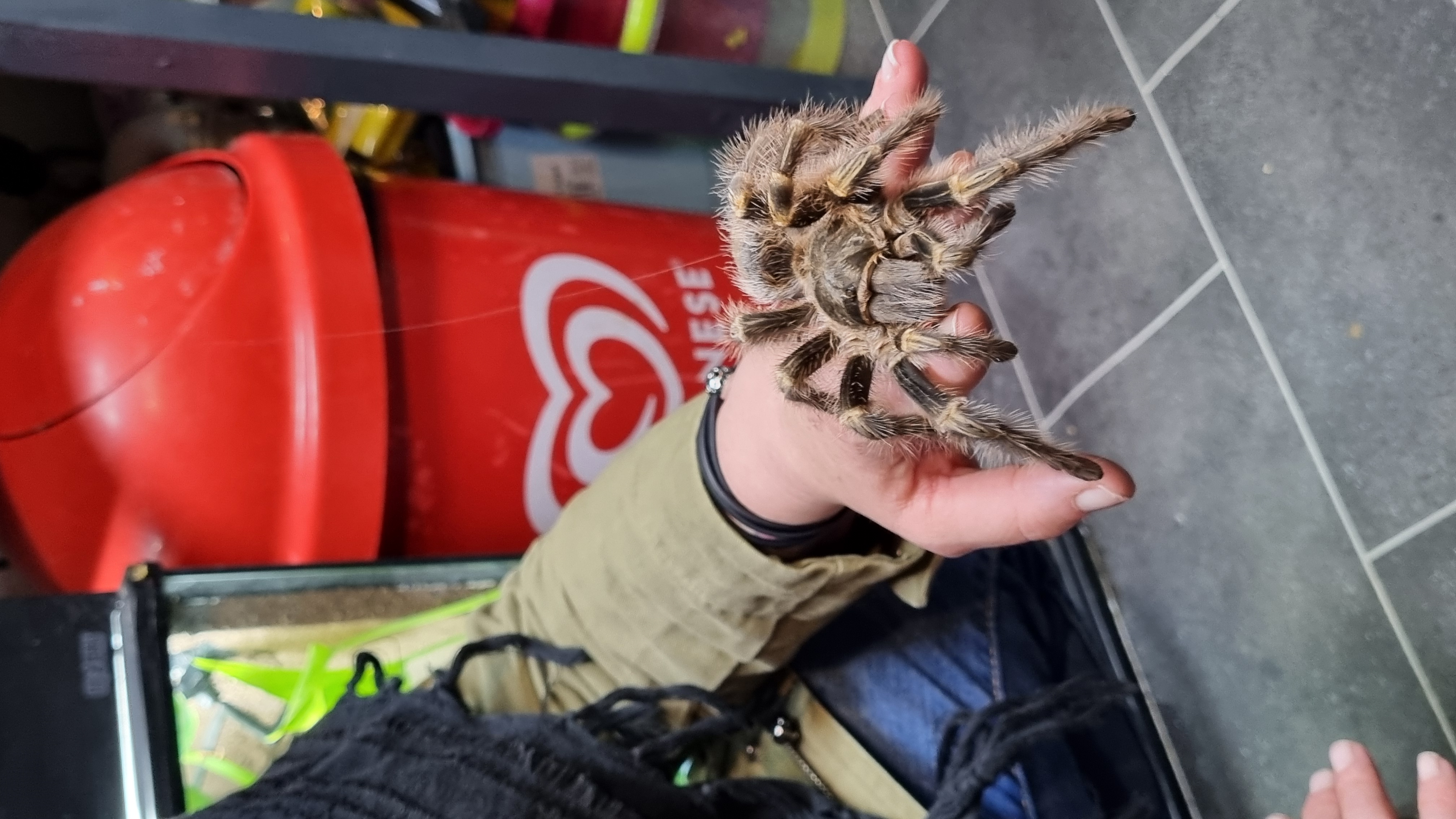 In der Station gibt es auch die Möglichkeit, eine Spinnenphobie therapieren zu lassen. Einige mutige Besucher trauten sich am Ende sogar, Spinne Belli auf die Hand zu nehmen. Belli gehört zu den Goldknievogelspinnen, ist Menschen gewöhnt und verhielt sich vorbildlich brav.